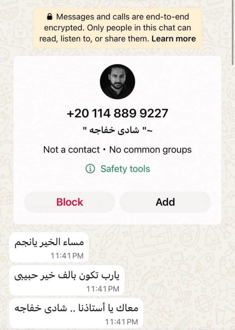 بعد أن تواصل معه شخص يدعى أنه الفنان الشاب شادي خفاجة وطلب منه مساعدة مالية بحجة مروره بظروف صعبة.