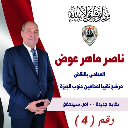 أعلن المستشار ناصر ماهر عوض، ترشحه على مقعد نقيب محامين جنوب الجيزة، الذي يمثل أحد أهم الفاعلين النقابيين في نقابة المحاميين، كما يتمتع بثقل كبير في النقابة، لأنه يعتمد على برنامج انتخابي الهدف منه خدمة وحماية السادة المحامين أعضاء مجلس نقابة المحامين.