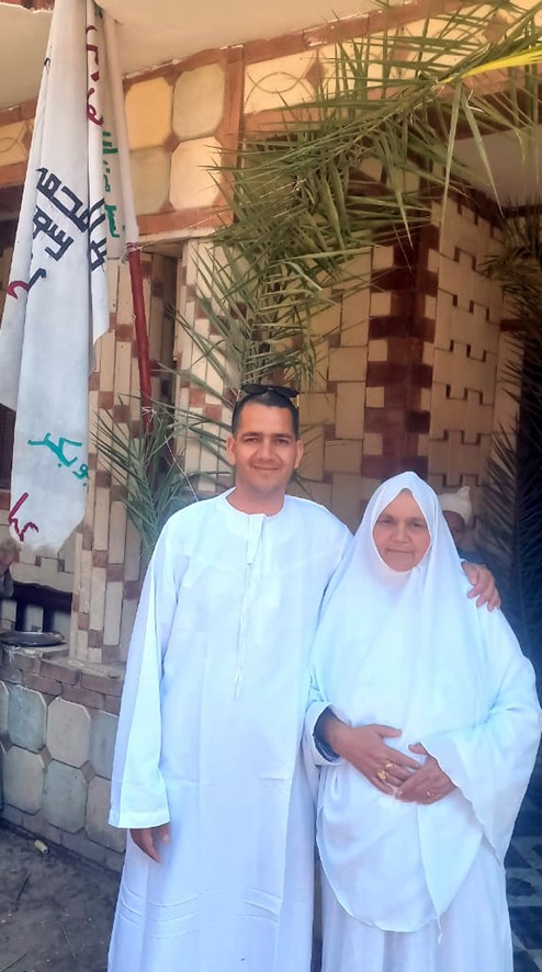 على أنغام التواشيح الصعيدية ونداءات "خدوني والله معاكم يا زوار النبي"، استقبل الأهالي السيارة التي تحمل المعتمرين الخمسة (مدحت وشقيقته حميدة، ووالدتهم السيدة كاميليا فرج، وخالتيهما عواطف وسميرة). ولم يغب "السعف الأخضر" والرايات البيضاء عن المشهد، حيث تزينت بها سيارة العودة كرمز للسلام والبركة، وسط زغاريد النساء التي شقت عنان السماء.